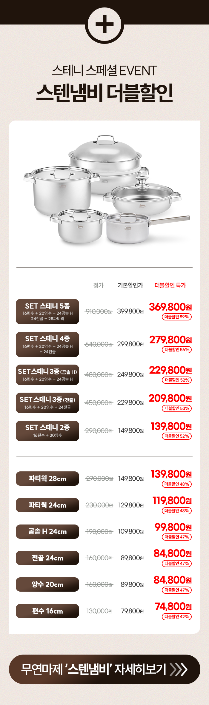 [최화정 Pick!] 스테니 무연마제 통5중 스테인리스 궁중팬 스텐웍 24cmSALEBESTHOT