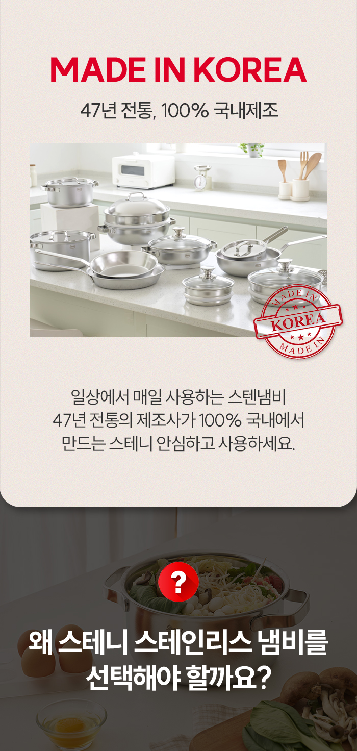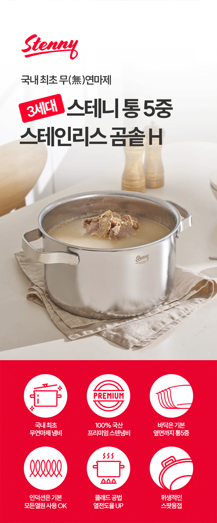 국내 최초 무연마제 스테인리스 냄비 'Stenny'