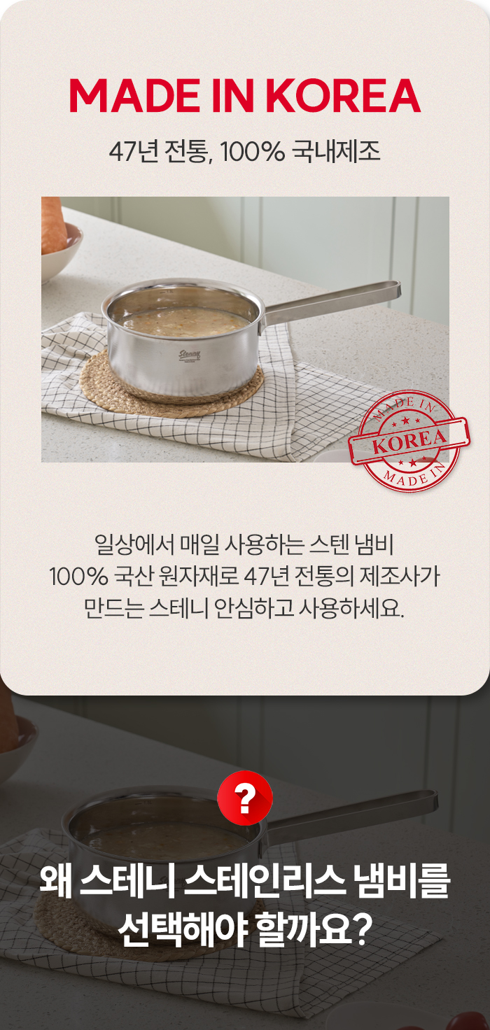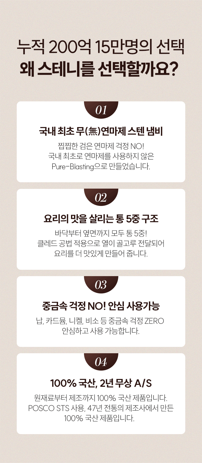 국내 최초 무연마제 스테인리스 냄비 'Stenny'