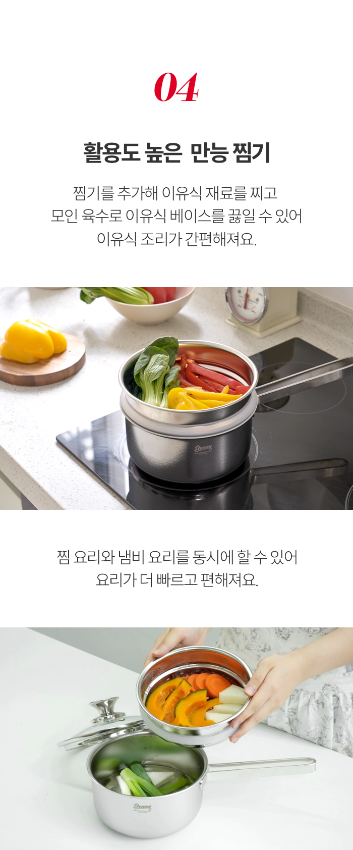 스테니 이유식 스텐 냄비는 인덕션, 가스레인지 하이라이트 등 모든 열원에서 사용가능합니다 |