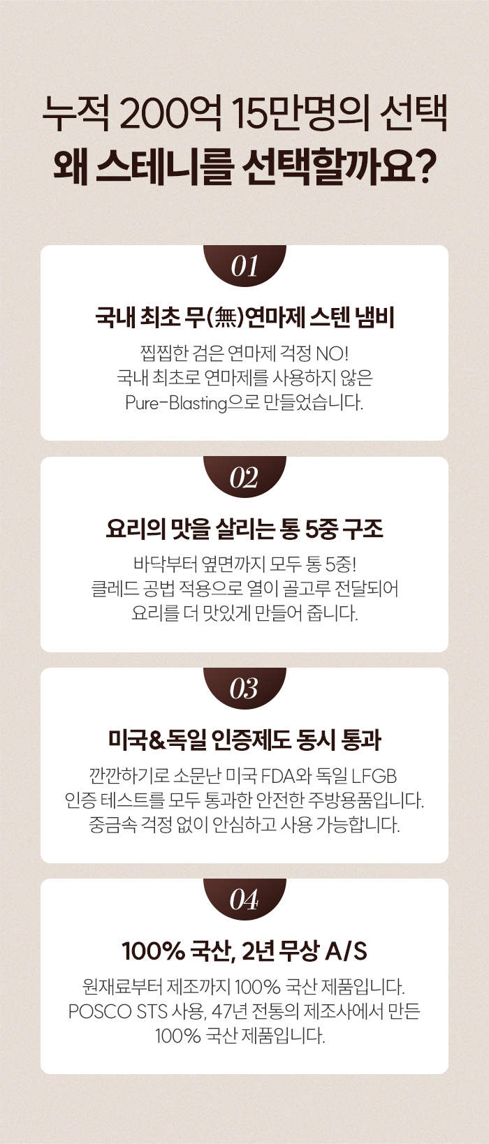 국내 최초 무연마제 스테인리스 냄비 'Stenny'